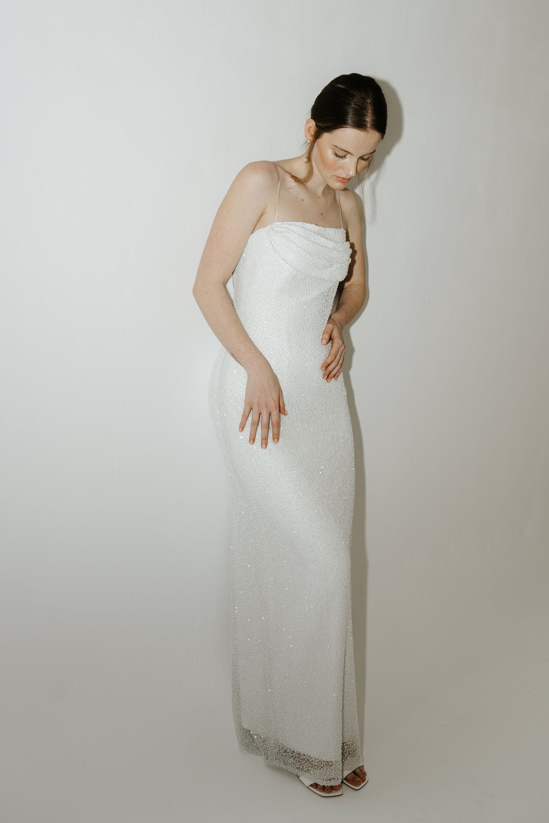 On the hanger vs. On the bride SS26’ #capridress #barcelona #atelier #newcollection #andrealalanza #weddingdress #bridal #bridalcollection #novia #noviasunicasButton