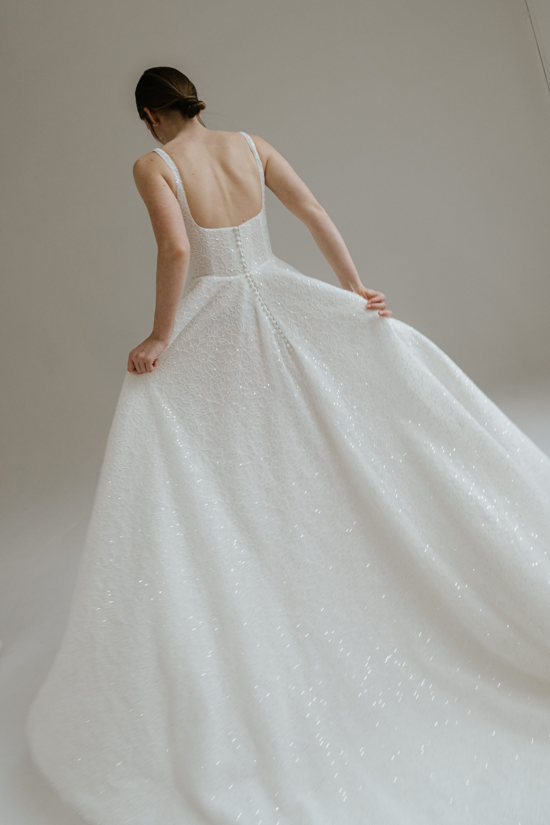 Autenticidad, atemporalidad y artesanía. Valores que son pilares fundamentales de la firma y que impregnan cada uno de nuestros vestidos.